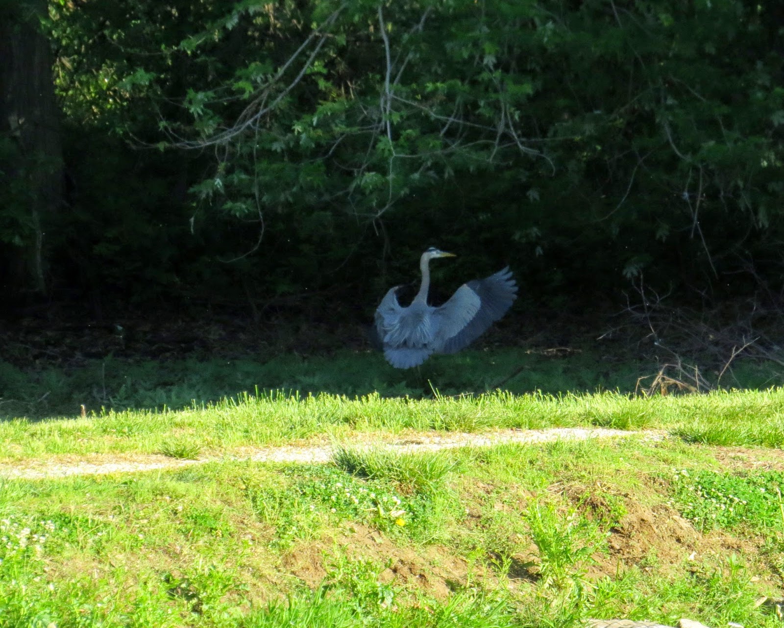I pointed my camera and got this shot as Mr. Heron landed. He was in the murky water on the other side of the dam.